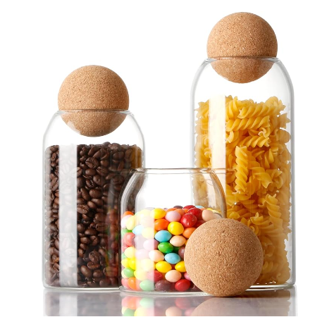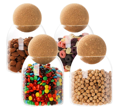 Kleine luftdichte Glas Vorrats behälter Holz kugel Kork deckel Küche Verwendung-Honig Wein Kaffeebohne Gewürz Tee DIY Dekorationen Candy Jar