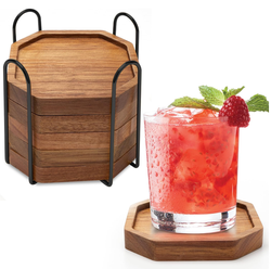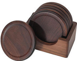 Klassisches Walnut Dark Coaster Set 6-teilig inklusive Halter aus reinem Naturholz Wunderschönes Dekor zum Essen