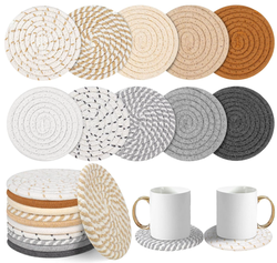 10 Stück Boho Woven Untersetzer Saugfähige Baumwolle & ABS Bunte Getränke Cup Untersetzer für Home Decor Bar oder Einweihung sparty Geschenk