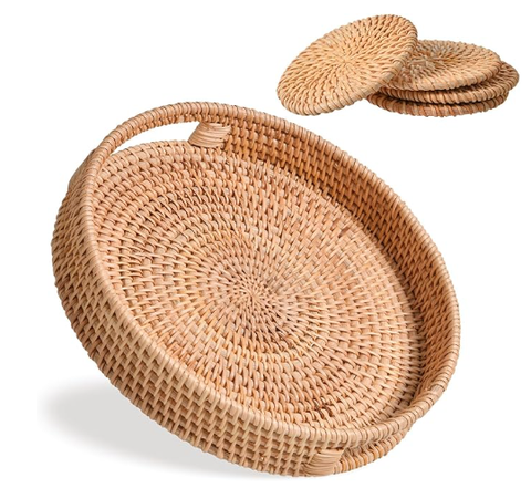 Stilvolle große runde Rattan Tablett tragbare Couch tisch Dekor und Serviert ablett Elegante Matten & Pads für Wohnkultur